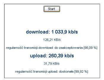 pobieranie: 49 kb/s, wysyłanie: 252 kb/s