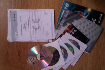 Komputer sprzedaje z masą sterownikow i dokumentów.