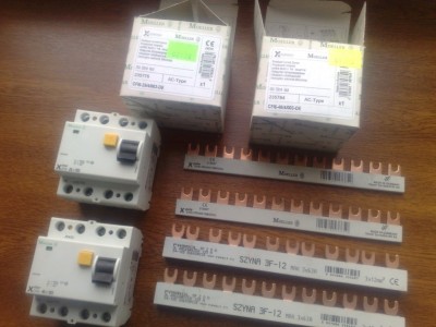 Sprzedam 2 sztuki wyłączników różnicowo-prądowych plus 4 listwy łączeniowe. Nowe. Cena 170zł.