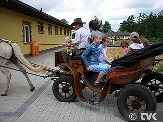 A w Krzeczowie dzieciaki mogły pojeździć konno a także bryczką. Wszystko naturalnie pod bacznym okiem instruktora i opiekunków. Nie zabrakło także wspólnych zabaw na świeżym powietrzu i czegos pysznego do jedzenia. Co śmielsi urządzili sobie również zabawę w dziennikarza. Wystarczył tylko mikrofon i rzecz jasna kamera TVK. Okazuje się, że już teraz drepczą nam po piętach nowi adepci tego niełatwego przecież zajęcia.